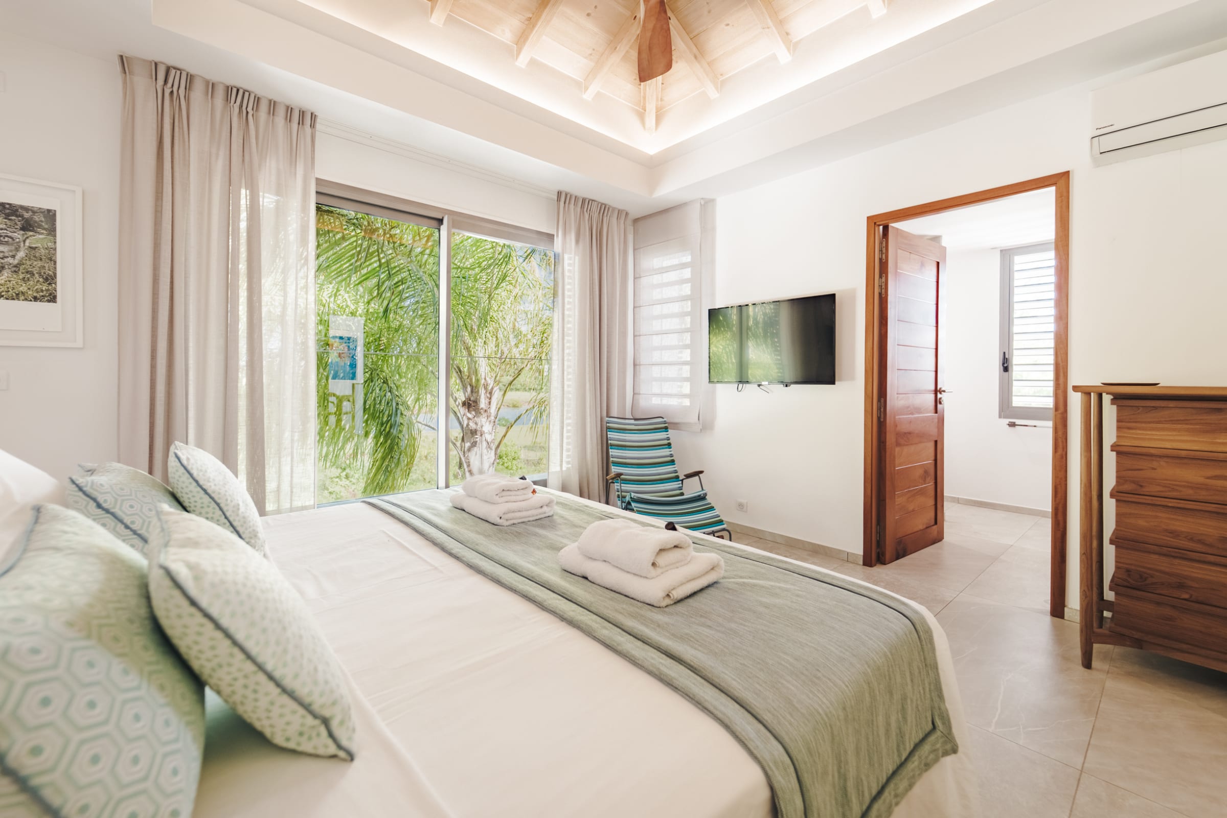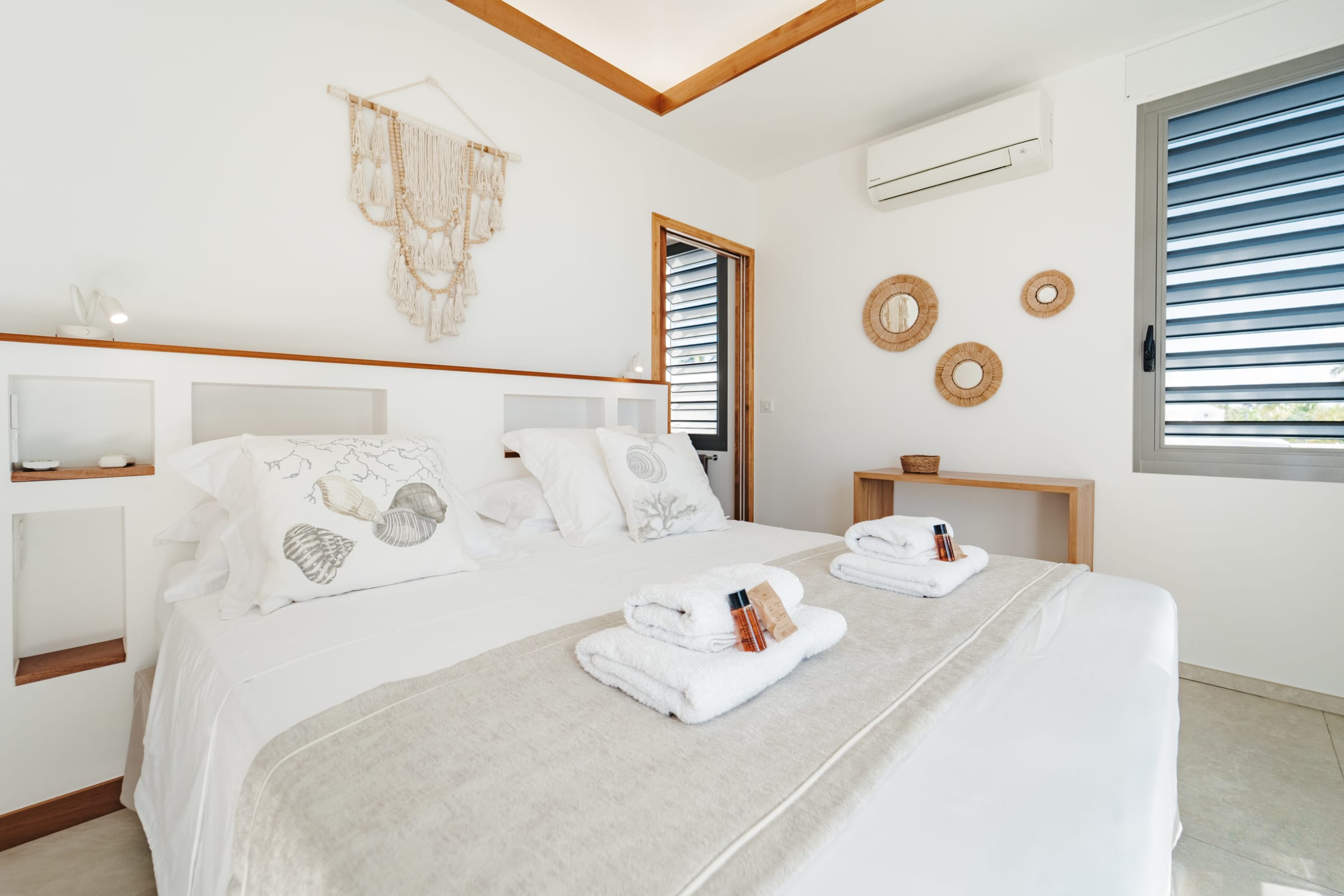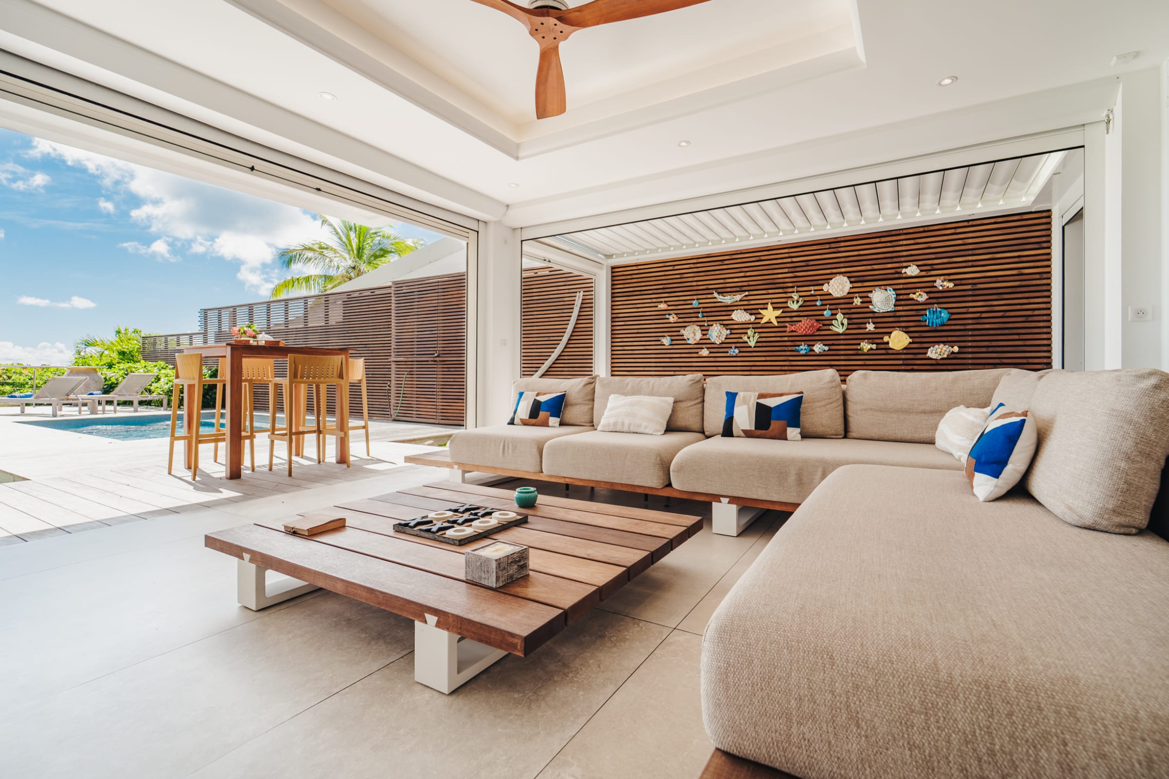 La Villa L’Étoile du Lagon séduit par son architecture contemporaine, son emplacement les pieds dans l’eau et ses prestations haut de gamme. Située entre le lagon turquoise et le golf international de Saint-François, à deux pas de la marina, des restaurants et des commerces, cette villa rare promet des vacances inoubliables en famille ou entre amis.
