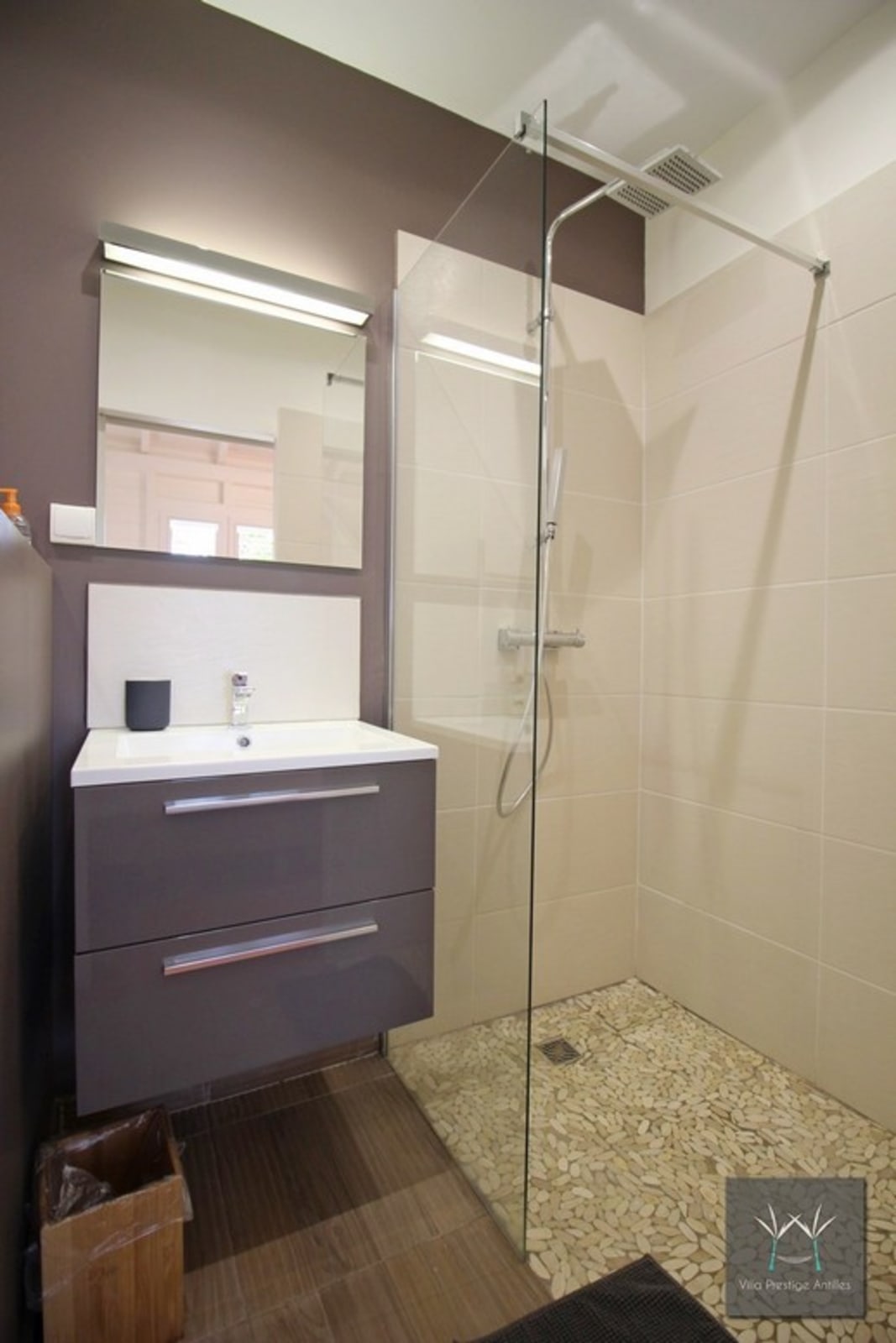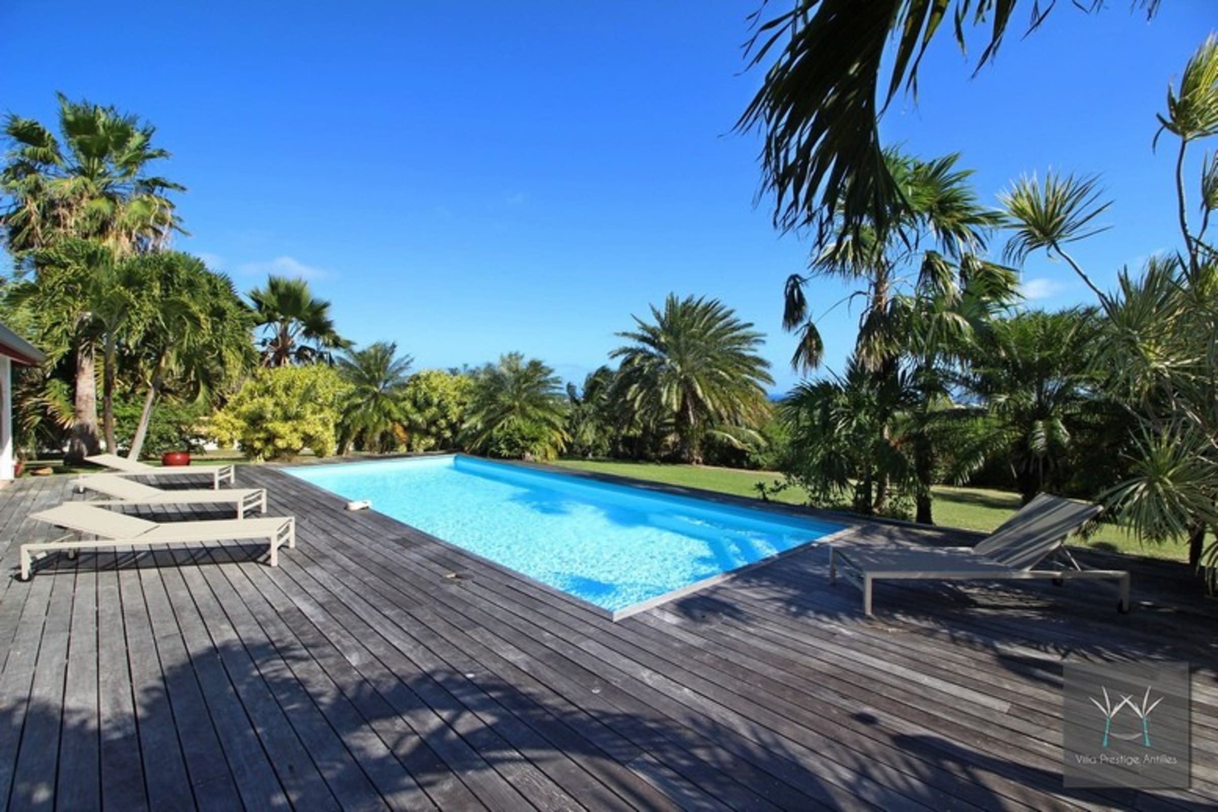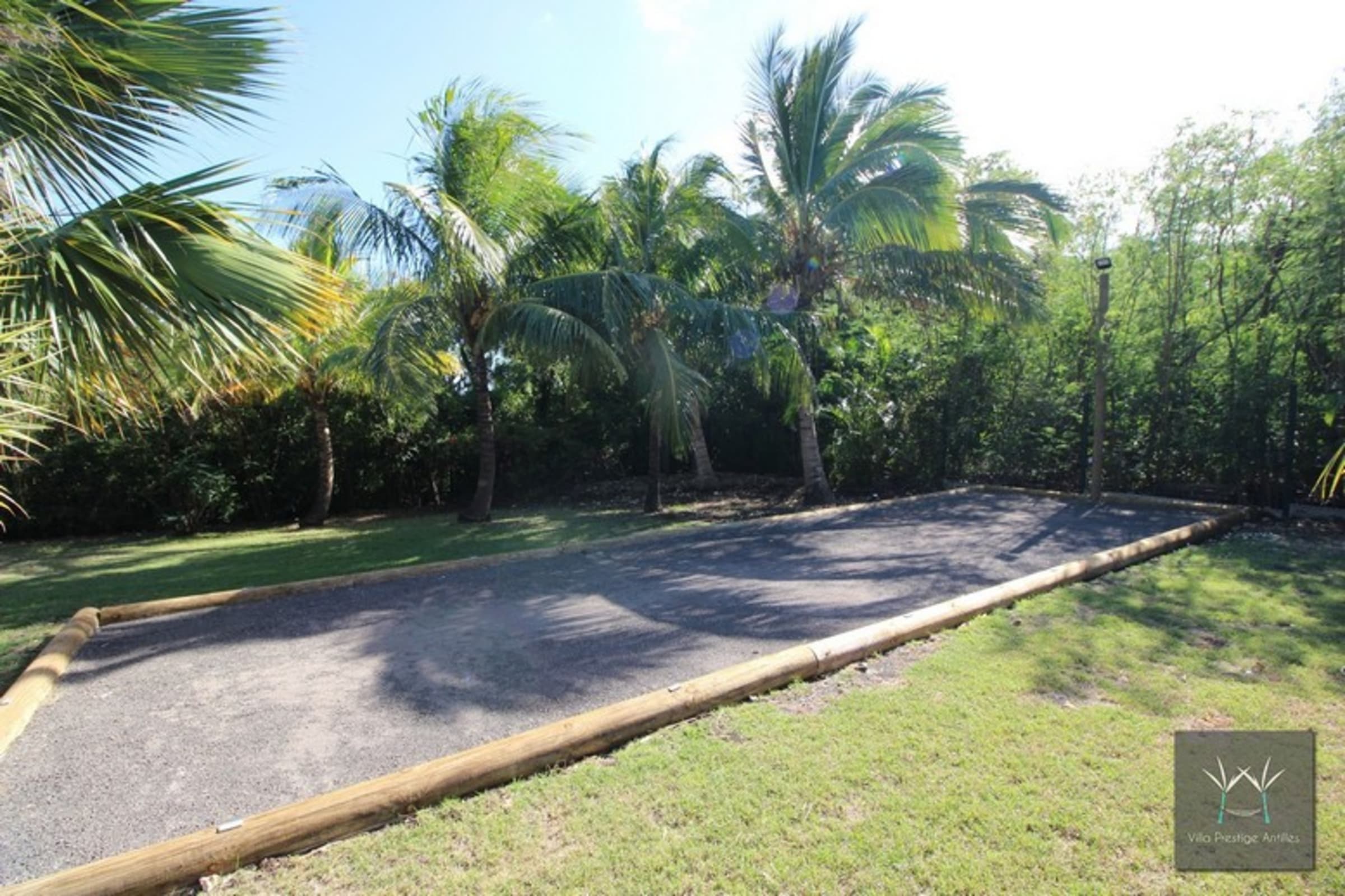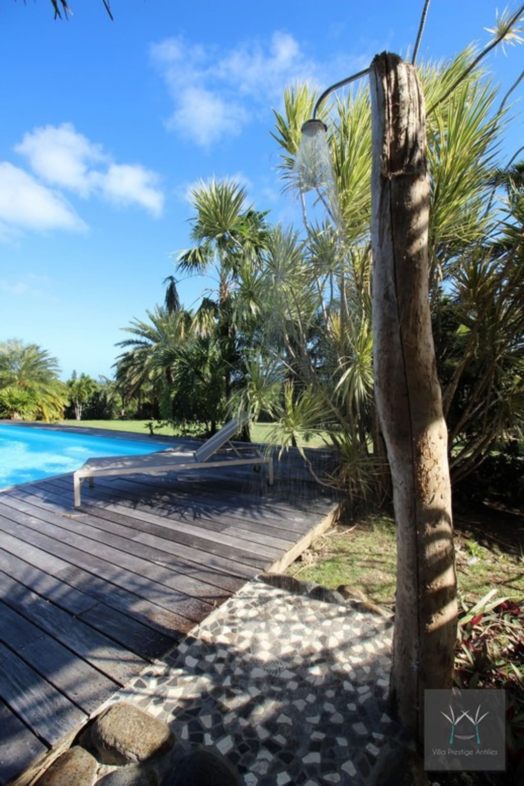 Entourée d’un superbe jardin tropical, la villa dispose d’une piscine au sel sécurisée par alarme immergée, d’un boulodrome, de transats et d’un salon extérieur ombragé. Une douche extérieure, un barbecue gaz, une citerne d’eau et un portail électrique complètent les équipements. Le tout dans un environnement paisible et sans vis-à-vis.
