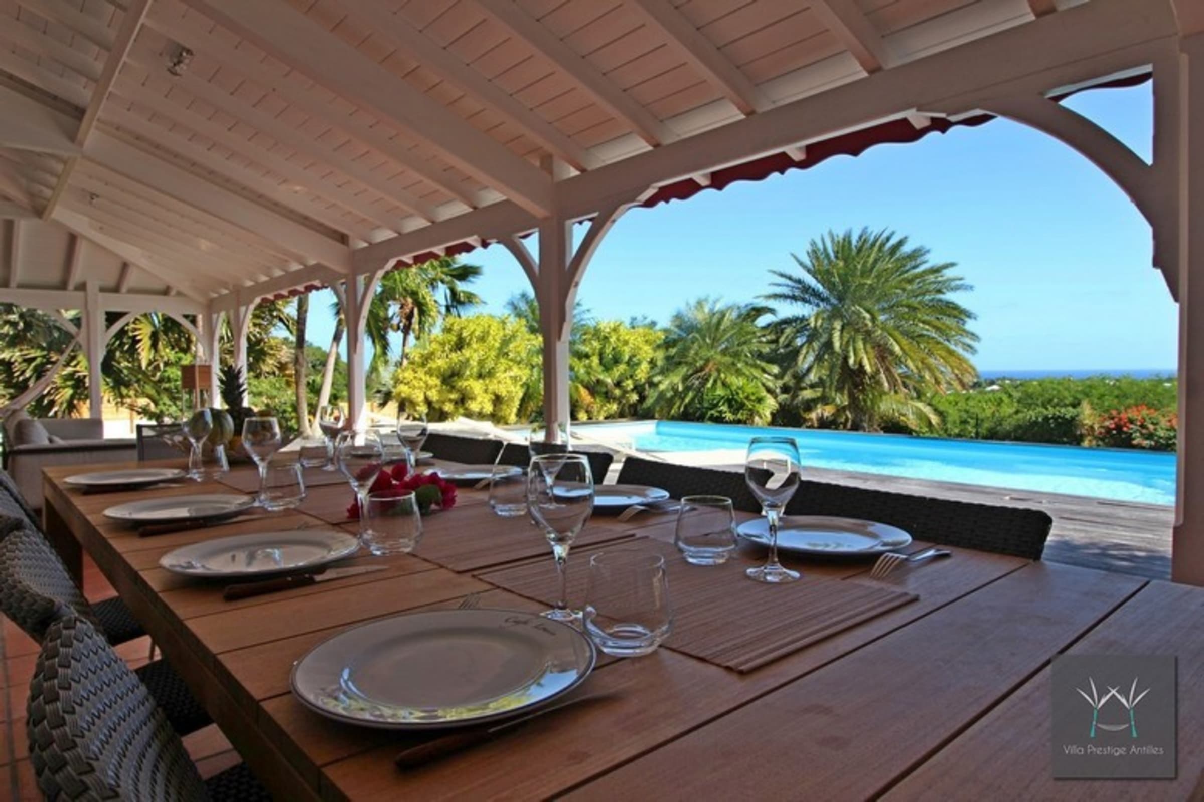 Au cœur d’un magnifique parc arboré, la Villa Majo est une authentique maison créole au charme irrésistible. Son architecture traditionnelle, son toit en tuiles de châtaignier et sa vue spectaculaire sur la mer en font un lieu à part. Entre convivialité, sérénité et art de vivre tropical, cette villa de caractère promet un séjour inoubliable, en famille ou entre amis.