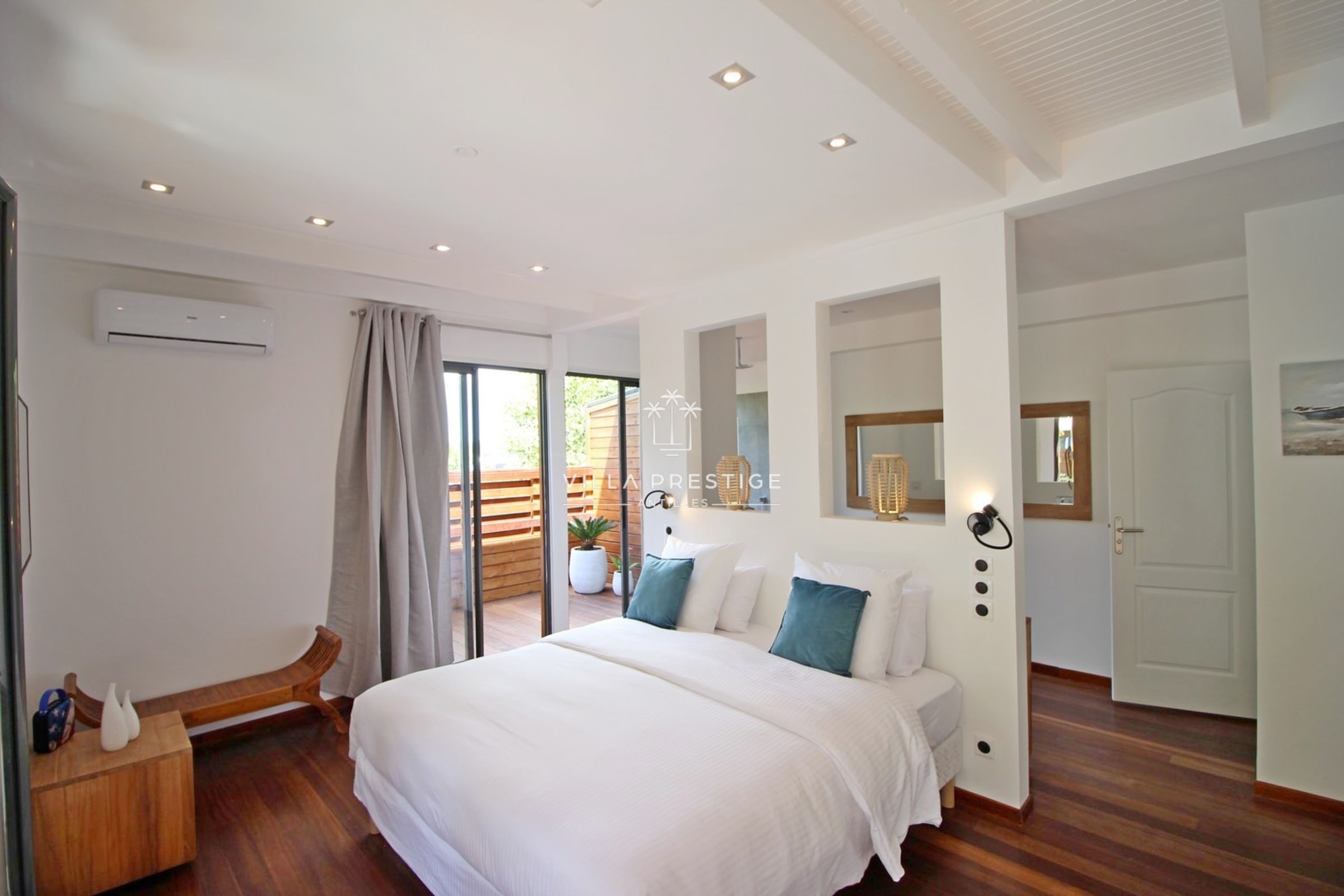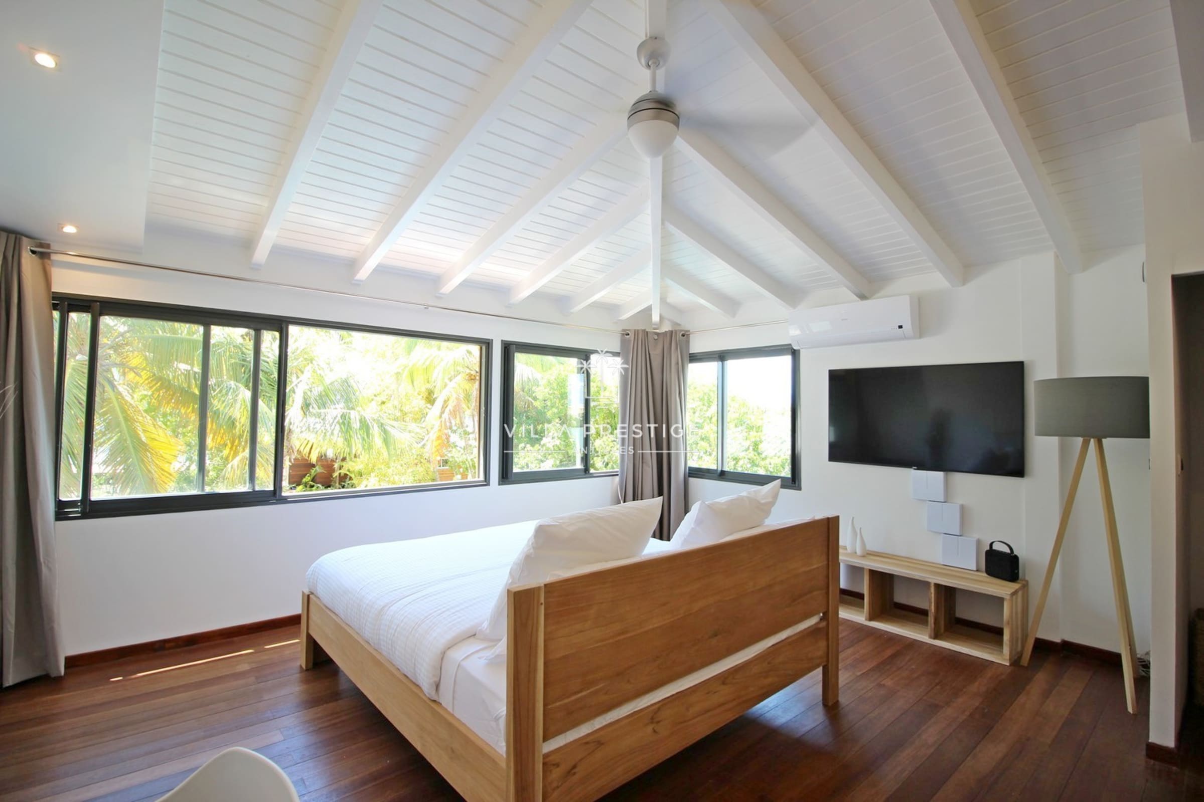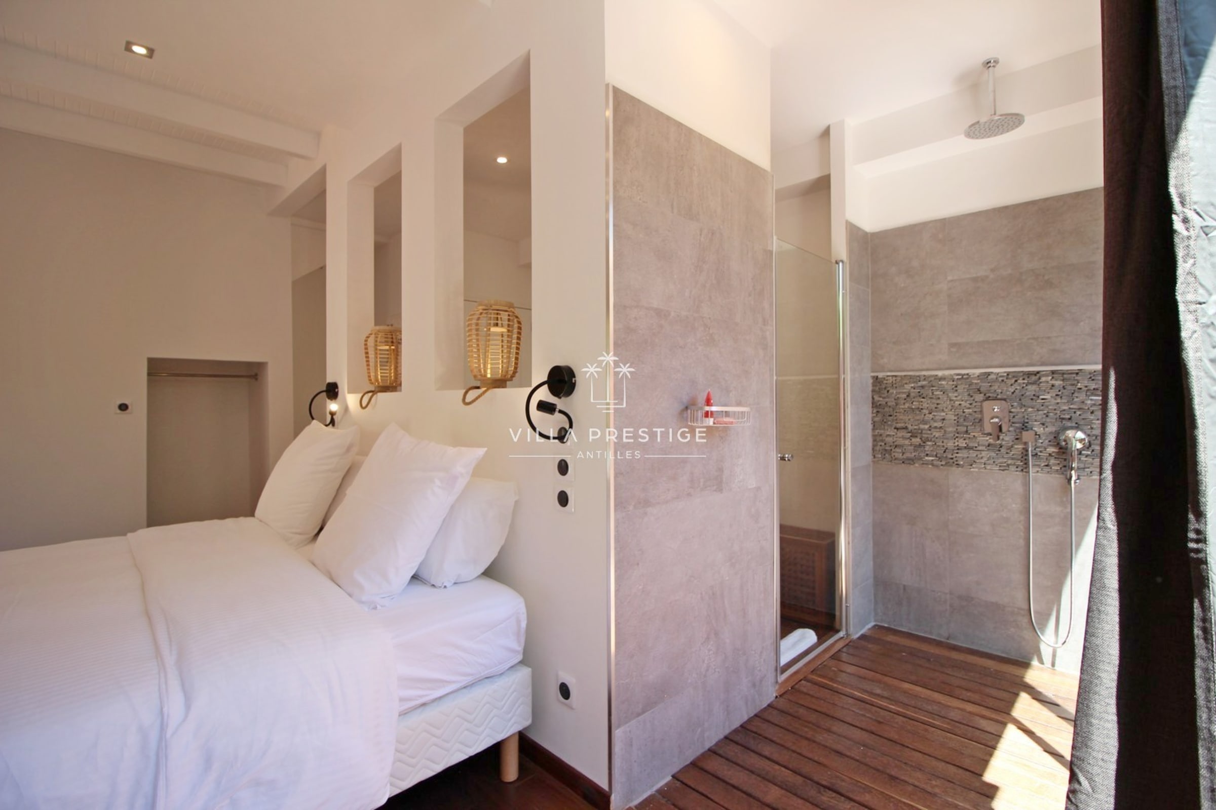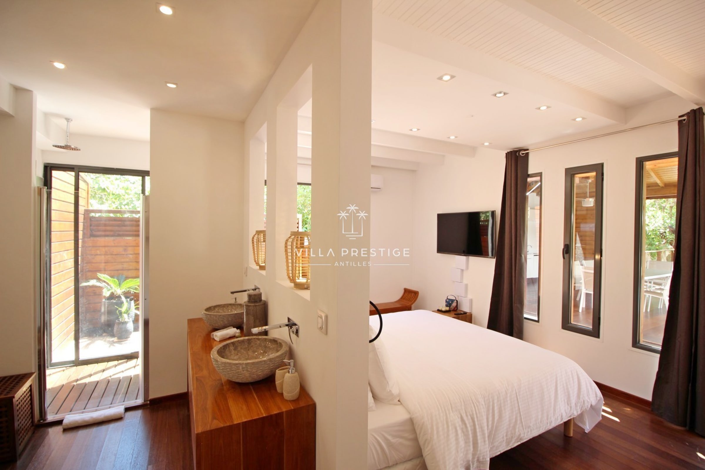 La villa comprend 2 suites climatisées avec salles de bain attenantes, toutes offrant une vue dégagée sur la mer et la végétation :