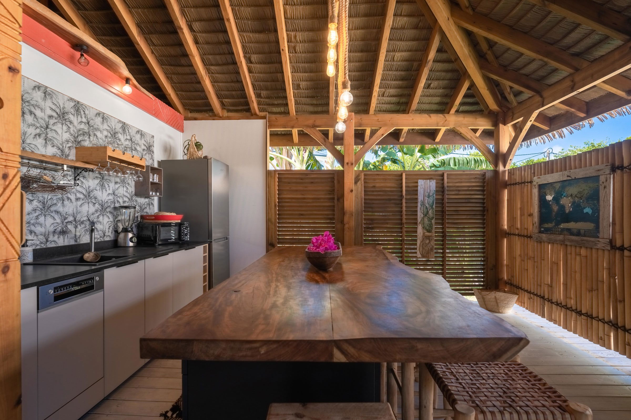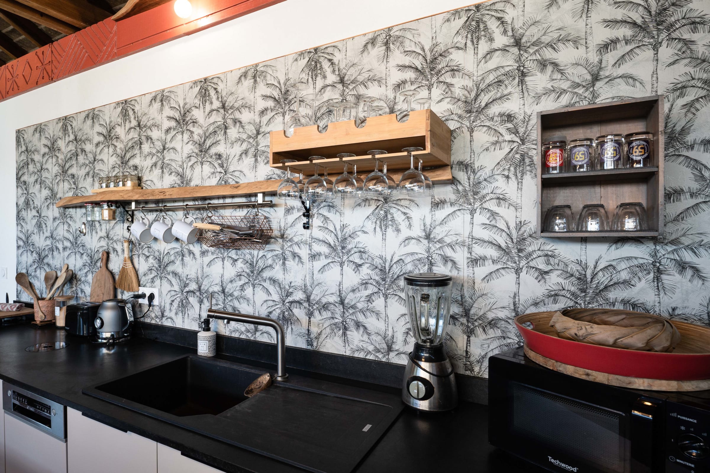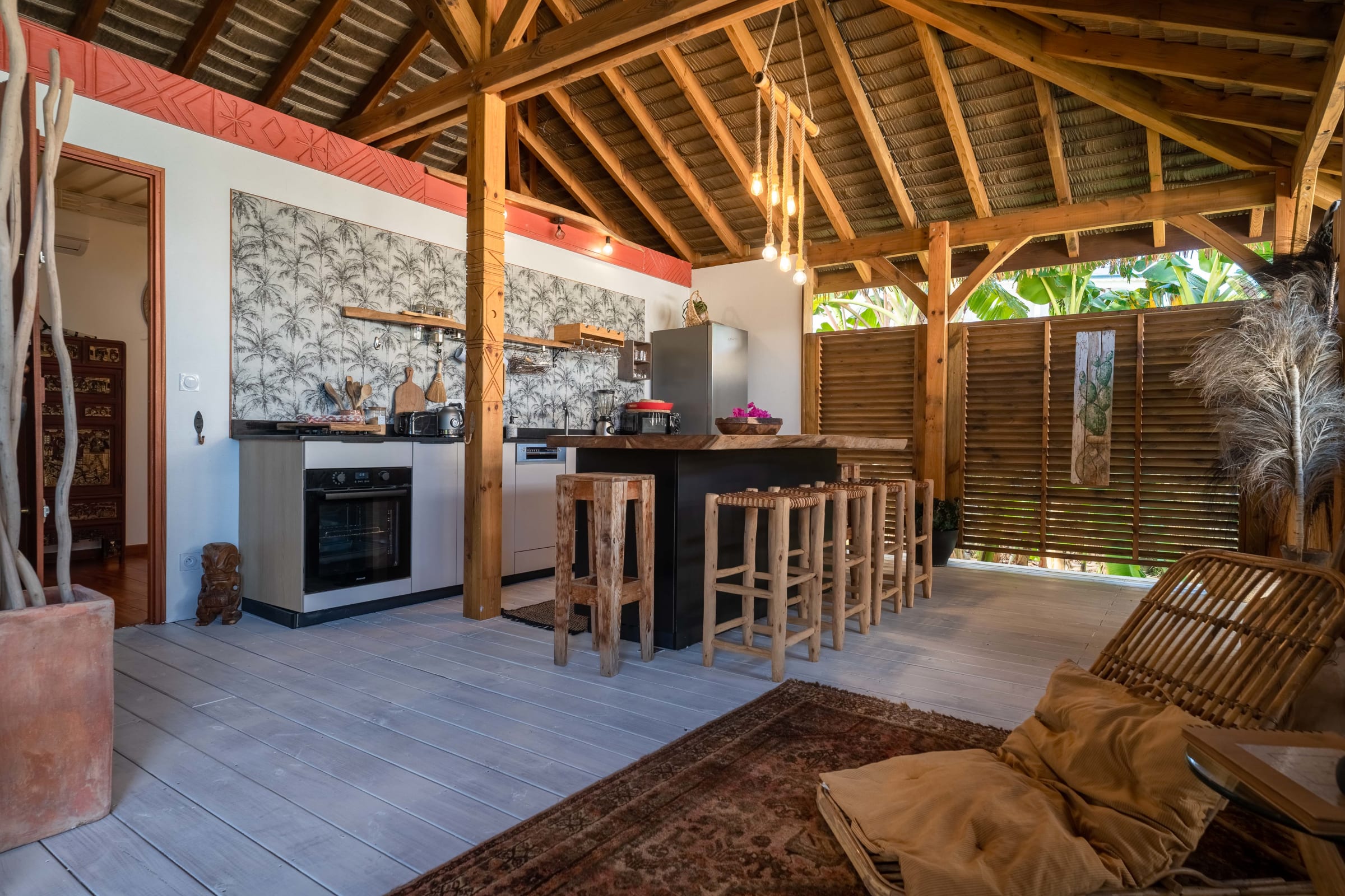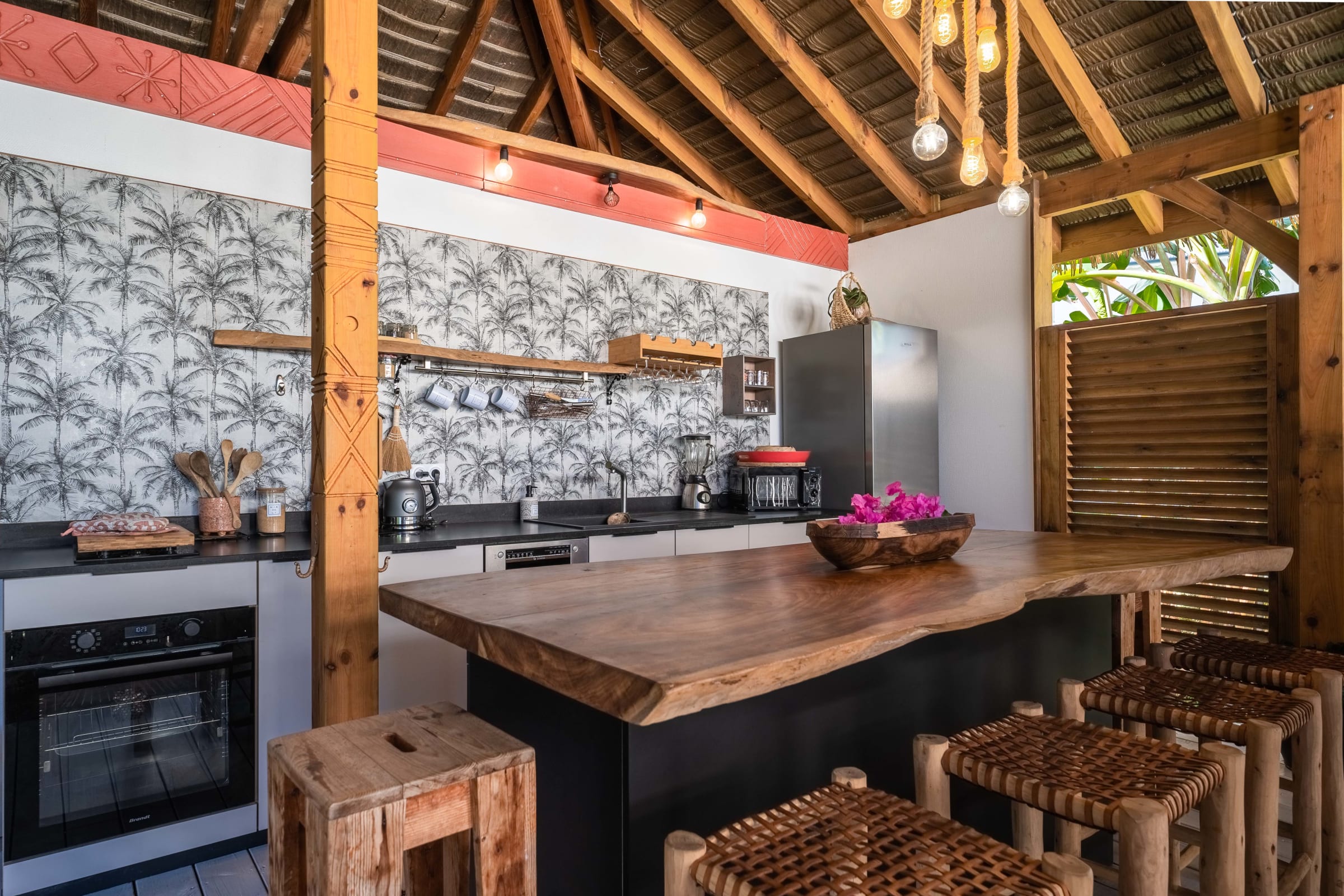 Une cuisine ultra conviviale largement ouverte la pièce de vie.